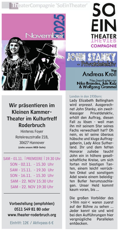 Programmhinweis im Programmheft des Kulturtreffs Roderbruch:
